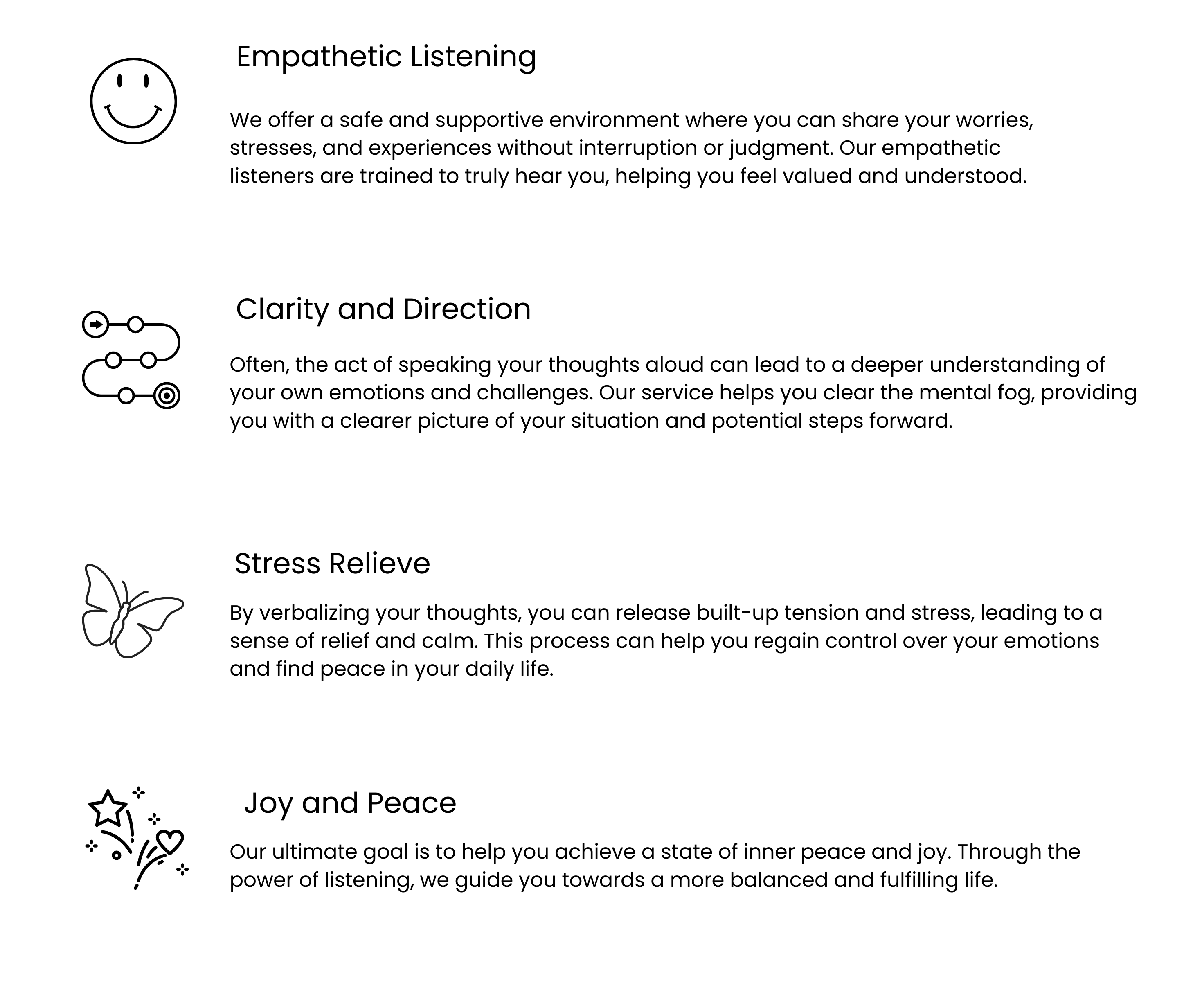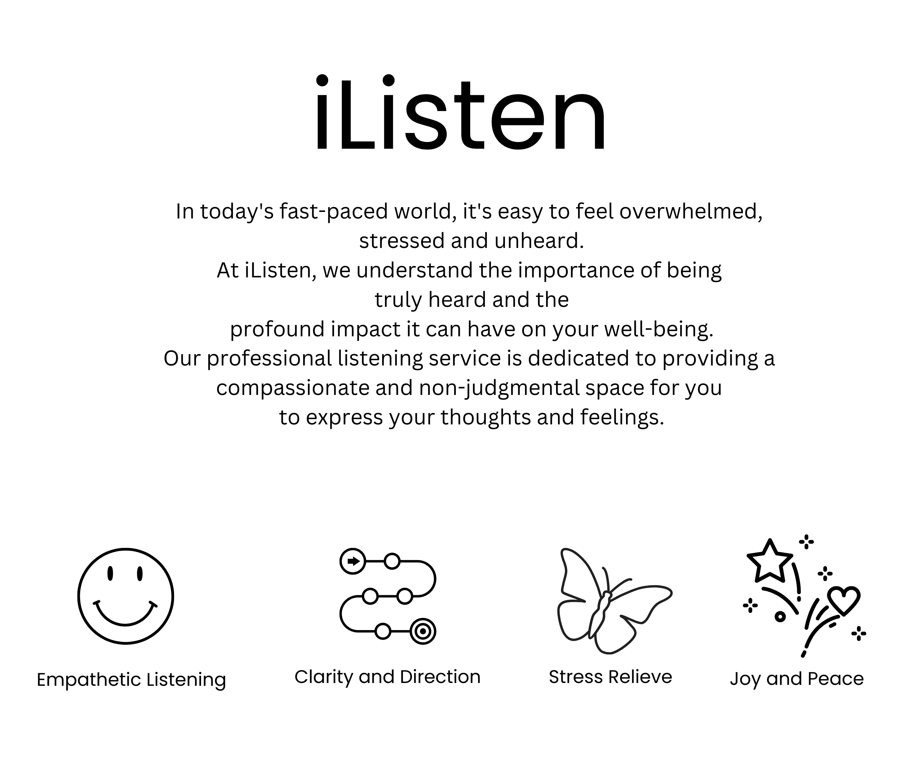 John M. "I was struggling with stress and feeling like no one really listened to me. I Listen provided a safe space where I could express myself without judgment. The empathetic listeners helped me release a lot of pent-up tension and see my situation from a new perspective. The support I received was incredible, and I am now more at peace and better equipped to handle life's challenges. I highly recommend I Listen to anyone feeling overwhelmed and unheard."